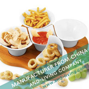 PORCELAIN BOWLS DIP SERVING SET WITH BAMBOO TRAY