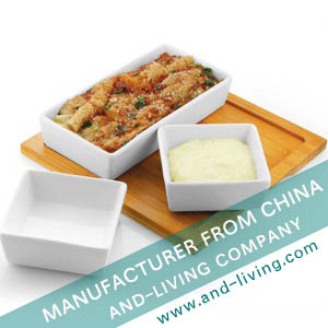 PORCELAIN BOWLS DIP SERVING SET WITH BAMBOO TRAY