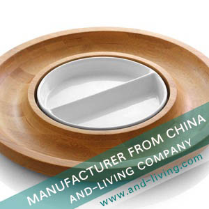 3-PC PORCELAIN SALAD SERVER W/ BAMBOO TRAY