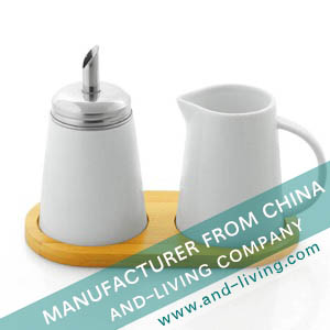 PORCELAIN SUGAR & CREAMER SET WITH BAMBOO TRAY