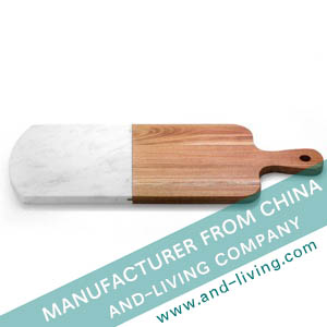 WHITE MARBLE AND ACACIA WOOD SERVING BOARD WITH PADDLE HANDLE